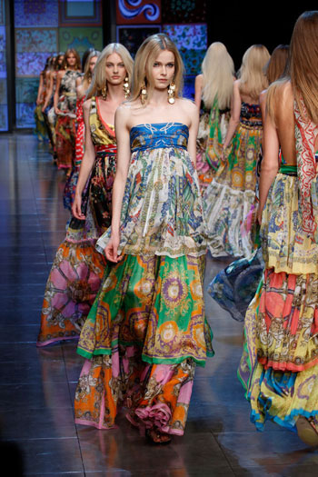 Миланское шоу было похоже на карнавал, а сказочные многоярусные платья из разноцветных, шелковых платков были настолько очаровательны, что выбрать самое красивое попросту невозможно.