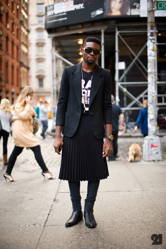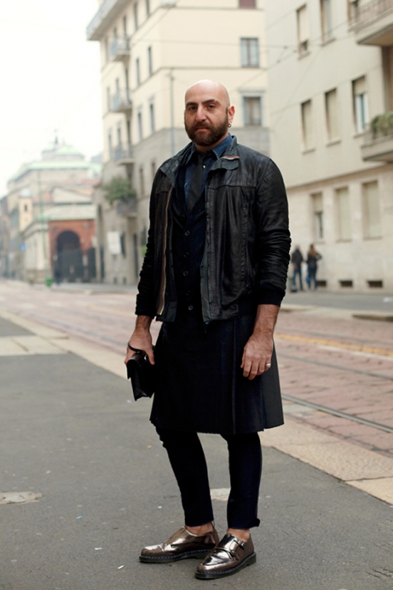 Тут хочется сделать поправочку: эстетичными мне кажутся только юбки длиной до колен и ниже. Идеальный вариант – это широкая юбка со складками длиной до щиколоток. Попробуйте сказать, что это не мужественно)