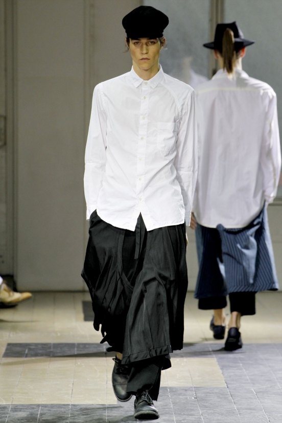 Особенно удачной мне кажется новая весенне-летняя коллекция от Yohji Yamamoto. Длинные, широкие, шуршащие юбки, без лишнего декора и принтов — так сказать, по-спартански. Все, я придумала, какой подарок дарить мужу на НГ)) и сказать: попробуй только, не носи:)