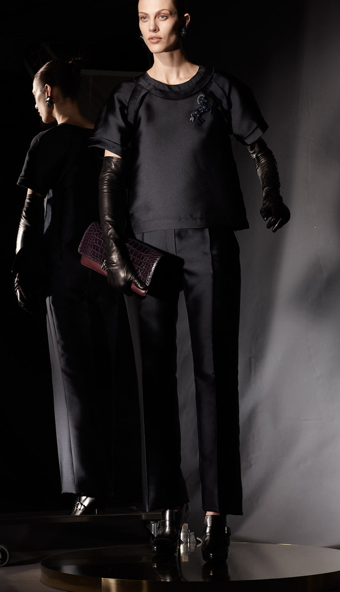 Что касается аксессуаров, которые по заявлению Lanvin всегда смелые, то они в настоящей коллекции они очень женственные и нежные. Ожерелья и брошки выглядят очень хорошо и немного ностальгически, шику одежде добавляют перчатки и шикарные пояса, обычные на первый взгляд, но странные в использовании, а также интересные мешковатые сумочки.