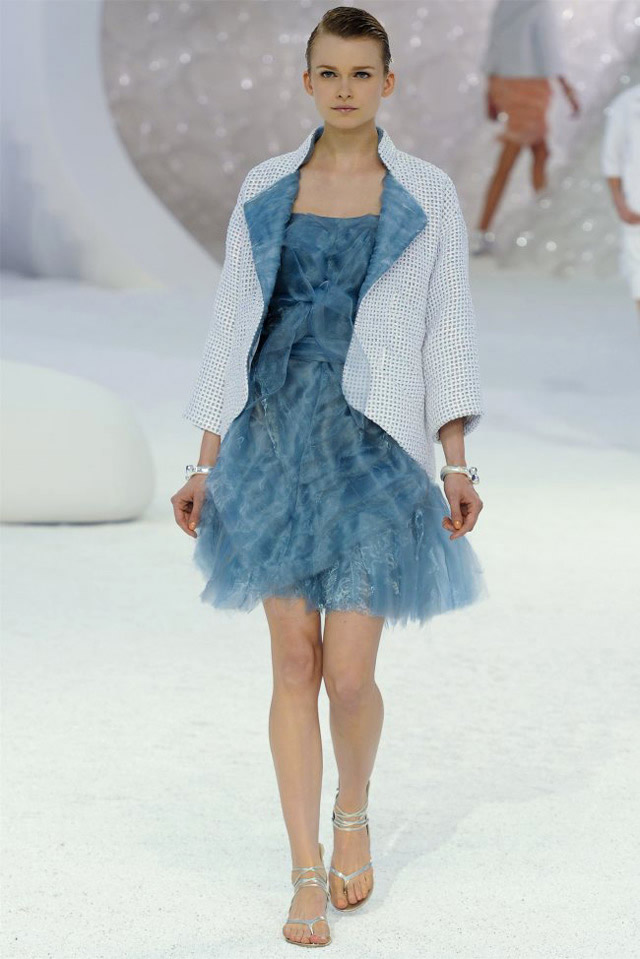 Для коллекции Chanel весна-лето 2012 Карл Лагерфельд выбрал морскую тему. Место, в котором проходил показ, Grand Palais, полностью соответствовало этим мотивам, кроме того в качестве музыкального сопровождения пели Florence Welsh. Проект получился фантастическим, убедитесь в этом, взглянув на фото с показа.