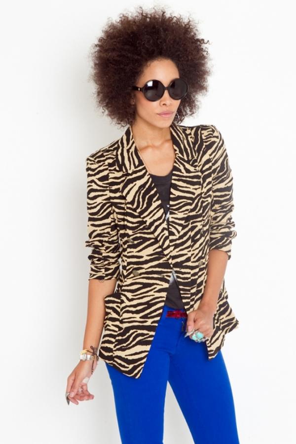 Цветные блейзеры смотрятся очень романтично, женственно и в то же время стильно. Если вы хотите выглядеть молодо и свежо весной 2012, цветные пиджаки – идеальный выбор для обновленного гардероба. Модные вещи весна-лето 2012 могут легко осуществить идею рок образа или гламурного образа. В моде цветочные принты, разнообразные геометрические узоры, полосы, а также шотландка. Принты с животными по-прежнему в моде и все так же обладают способностью добавить стиля вашему стилю.