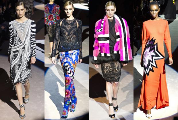 Кросс-культурная мульти этника – название шоу Тома Форда (Tom Ford) на Лондонской неделей моды. Он решил выйти за границы своей зоны комфорта, чтобы продемонстрировать красочную коллекцию, полную принта, орнамента и цвета. Раскраски в стиле африканских племен появились в черно-белом варианте, цветочный принт разместился на красочных пальто, платьях, юбках и даже сапогах, а брюки в индийском стиле исполнены из блестящей прозрачной материи с кружевом.