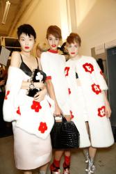 За чёрным цветом последовал сливовый, зелёный и розовый. По ним дизайнер как будто разбрызгала краску и нашила белые и красные цветы. Любовь к использованию меха в летних коллекциях прослеживается и в этот раз. Накидки и пальто из каракуля легко сочетаются с моделями из шёлка и тонкого трикотажа. Интересно, последуют ли остальные дизайнеры азиатским заветам Прада?