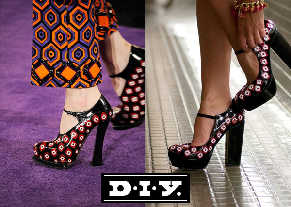 В качестве источника вдохновения взяты чёрные туфли Prada с геометрическим рисунком.