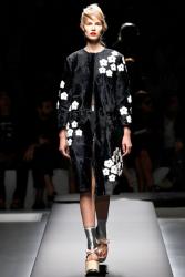 Таинственным и смелым языком природы написана новая летняя коллекция Prada - в ней есть и запах трав и легкость облаков и даже неприступность гор. В ней сочетается и женственность и грация, все составляющие, как будто сговорившись, позволили модельерам не просто овладеть природным языком, а дали возможность написать на нём стихи. Нет больше кричащих нарядов, неестественных форм и блеклых цветов, есть загадочность и манящая свежесть женской обаятельности. Одежда из новой коллекции придется по вкусу любой современной нимфе, ведь дизайнеры перестали ориентироваться на высокую моду и сотворили именно то, что нужно всем нам этим летом.
