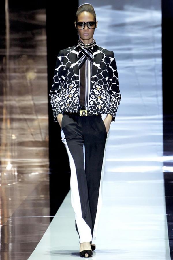 Племенная тема, которая присутствовала также на показах модные коллекций Donna Karan, Michael Kors, и Burberry Prorsum сезона весна-лето 2012, наиболее четко была видна именно в коллекции Gucci. Безусловно, племенной дух на показе присутствовал, о чем напоминали «жирафьи»и леопардовые принты на широких куртках. Еще одна тенденция на показе Gucci весна-лето 2012 – это сетчатая ткань, которая присутствовала в большей половине одежды. По словам модных критиков, это одна из самых последних тенденций сезона весна-лето 2012.