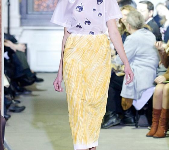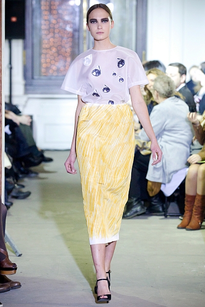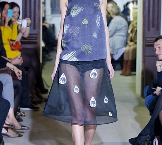 Вика Газинская - одна из немногих российских дизайнеров, чьи коллекции всегда вызывают у меня восторг. У нее есть свой особый стиль, ни на кого непохожий. Она любит играть с формами и у нее это довольно хорошо получается. В этой коллекции можно заметить большое количество юбок: в основном длины миди, есть и карандаш и трапеция. Принты в виде рисунков и штрихов карандашом.