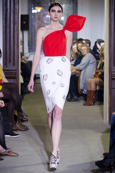 Крупные оборки и воланы — один из главных трендов сезона весна-лето 2013. И сделали их не только Николя Гескьер для Balenciaga и я, а множество хороших дизайнеров. Так что я просто "попала в тренд". Честно, я люблю работы самого Кристобаля Баленсиаги, у меня есть несколько книг-альбомов с его архивами, и я постоянно их перелистываю. Считаю, что никто так гениально не работал с объемом, словно "обволакивая" формой женщину, подчеркивая ее хрупкость и изящество. Кристобаль однозначно опережал коллег своей эпохи. При этом женщины в его одежде никогда не выглядели жертвами моды, напротив, были очень элегантны — эдакие "sophisticated women".