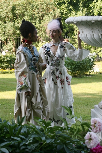 Новая коллекция знаменитого Санкт-Петербургского «Модного дома Татьяны Парфеновой» называется «Фрейлинский сад» – по имени интимного и чарующего уголка парка вблизи Екатерининского дворца в Царском Селе. Именно там был представлен маленький перфоманс, главными героинями в котором были платья, созданные в Модном доме. Именно там началась будущая коллекция.