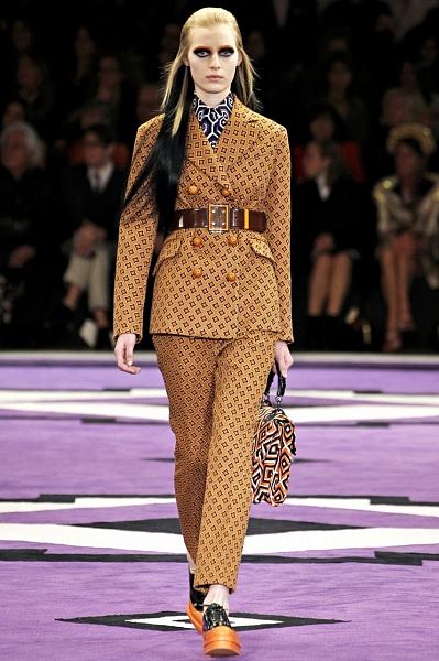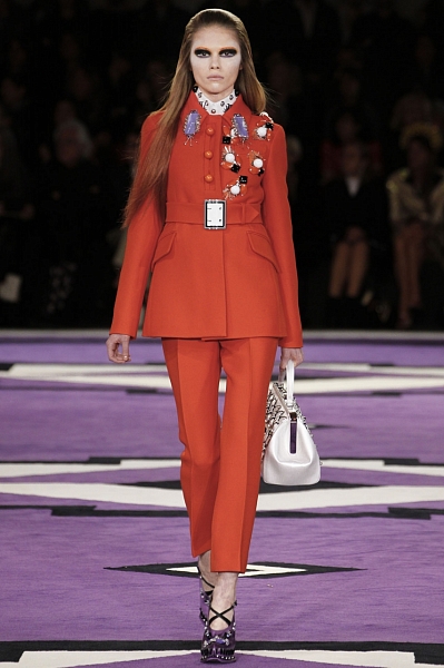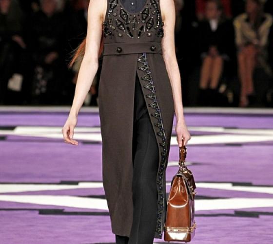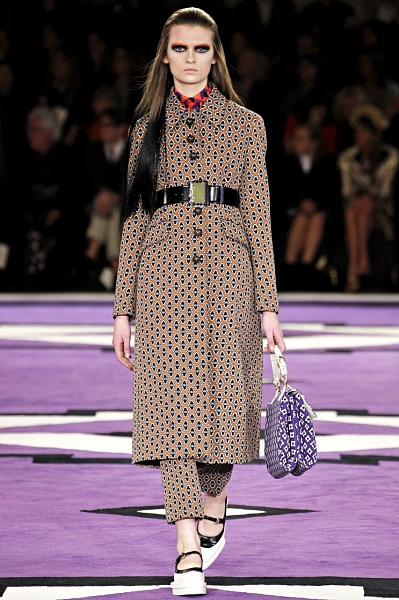 Новая коллекция Prada осенне-зимнего сезона - это, в первую очередь, брюки. Безусловно в ней представлены платья и юбки, но основная ставка сделана на брюки. Укороченные модели чуть выше лодыжки или длинные прямые, но не слишком зауженные, выполненные из шерсти, однотонные или с принтами из телесериала The Brady Bunch.