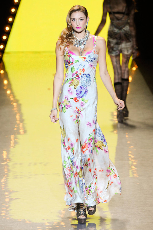 В начале доминирует белый цвет - тренд, неоднократно встретившийся уже на подиуме на Нью-Йоркской неделе моды, далее появляется дерзость, глэм-рок, интересные принты, надписи на топах, так же модное сочетание чёрного и белого, но всё это разбавляется цветочными принтами и милыми платьями. Очень странно выглядит бельё, выглядывающее из под одежды, но по-моему это добавляет изюминку каждому наряду.