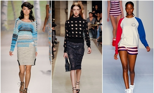 Нижняя вещь может быть длинной — гораздо длиннее кофты. Это смотрится неплохо, если речь идет о прогулочном комплекте с джинсами.
