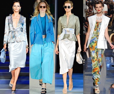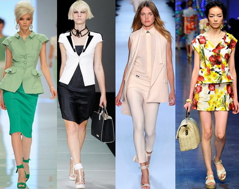 Как и в моде на пальто и плащи, модные пиджаки сезона весна-лето 2012 в коллекциях именитых кутюрье во множестве представлены фасонами без рукавов (Givenchy, Dries van Noten, Dolce & Gabbana, Jean Paul Goultier), с коротким рукавом (Emporio Armani, ermanno scervino) с укороченным рукавом до локтя или чуть ниже (Луис Виттон, Chanel, Pucci, Mulberry, Fendi).
