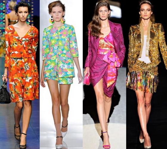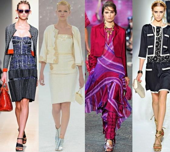 В весенне-летнем сезоне 2012 года женские жакетики могут иметь самые смелые принты. К примеру, Dolce & Gabbana предлагает носить жакеты с ярким крупным овощным принтом, Marni — жакеты из ткани в цветочек, Jil Sander — с узором пейсли... Выбор велик и предпочтение здесь отдается женственности. Строгие геометрические принты если и встречаются, то редко, и, как правило, в сочетании с ярким цветом и или богатой отделкой (Ferragamo).