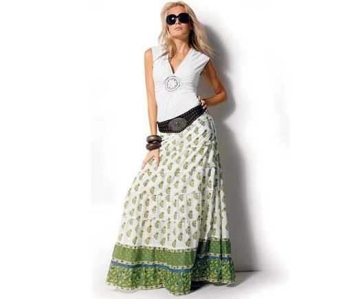 Дизайнеры кардинально поменяли свои предпочтения, сменив мини-юбки на романтичные макси юбки. Длинные юбки до пола, из струящихся тканей, приятные на ощупь. Такая юбка выглядят эффектно, в ней вы не сможете остаться незамеченной. Дизайнеры предлагают разные модели длинных юбок – это и пышные 50-х годов и узкие, может напоминать пончо или с кистями. Также стоит обратить внимание на длинную юбку-карандаш, с ее помощью можно сотворить чудесные превращения с вашей фигурой. Модным девушкам остается лишь поддерживать подол, привлекая взгляды мужчин.