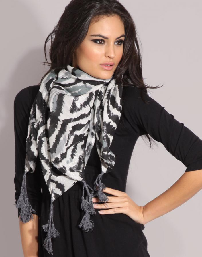 Длинный шёлковый шарф с кокетливыми кисточками – это уже совсем другая история, как говорит знаменитая хранительница моды Эвелина Хромченко. Такой шарф должен быть у каждой девушки. Главное, умело подобрать подходящий своему типу кожи и лица рисунок.