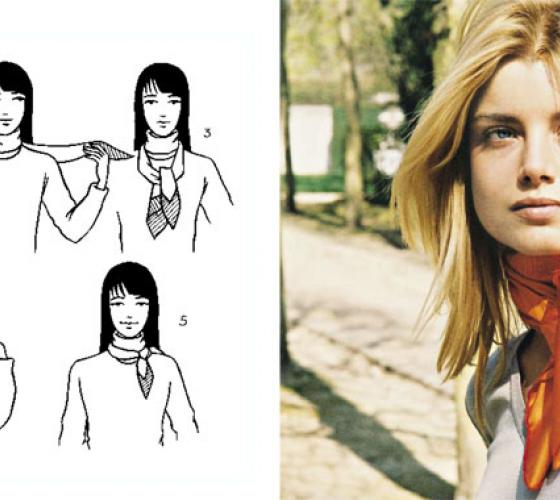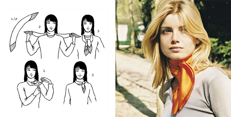 Знаменитые шёлковые шейные платочки стали приметой французских модниц. Отдавая дань традиции, они продолжают носить этот аксессуар исключительно на шее. Маленький шейный шарфик придаёт своей обладательнице изысканность и истинный французский шарм.