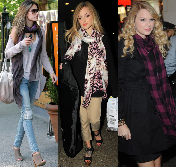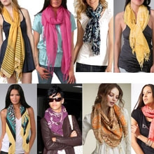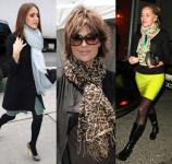 Выбирайте яркие шарфы, они будут не только греть вас в холодную погоду, но и поднимать вам настроение своим цветом. Существуют не только обыкновенные прямоугольные шарфы, но и круглые, квадратные, треугольные. Обычно шарфы шьют из таких материалов, как бархат, кашемир, шелк или жоржет. Как носить шарф, решаете только вы. Теплые кашемировые шарфы будут согревать вас в холода. Шелковый шарф будет стильным аксессуаром в теплую погоду. Шарфы из крепдешина, из-за своей воздушности, гармонично смотрятся на любой женщине.