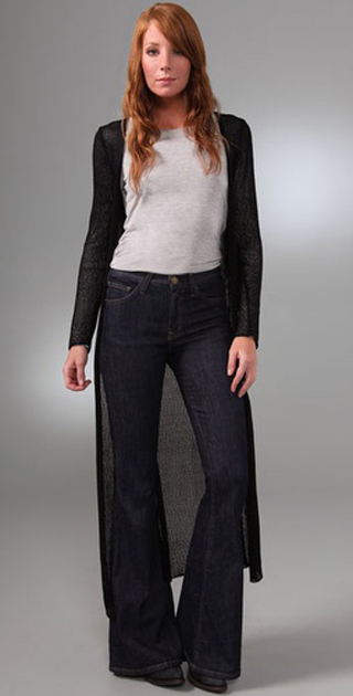 Кокетливо и оригинально смотрится длинный кардиган в сочетании с макси-юбкой. Наденьте блузку или плотную майку и воздушную юбку с оборками. Чтобы подчеркнуть талию, заправьте блузку внутрь.