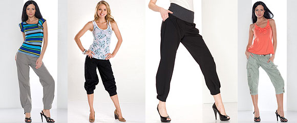 В тёплое время года брюки-бананы женские могут быть значительно короче, иногда даже выше колен и разнообразнее по расцветке. Длинные легкие брюки-бананы подойдут лучше всего к ботильонам на шнуровке или же открытыми пальцами, а также к босоножкам на каблуках и с ремнями. Верхом может служить лёгкая невесомая блуза или рубашка, которая обязательно должна быть заправлена в брюки-бананы. Помимо этого пиджачки или короткие жакеты будут также актуальны и хороши в сочетании с бананами. Не забывайте о тканях и расцветках, старайтесь, чтобы всё было в тон, как – никак, а бананы – это современная классика, поэтому делая акцент на ярких штанах, надевайте светлый верх или, наоборот, под яркую кофту подбирайте нежный тон брюк.