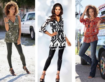 Любая туника идеально подходит к лосинам. Хотя нет, не к лосинам, их носили в свою молодость наши мамы, а мы же носим леггинсы ;) . Не имеет разницы, как вы назовёте эту деталь гардероба, но именно тонкие, обтягивающие лосины-леггинсы смотрятся с туникой очень красиво и соблазнительно. Это могут быть лосины до щиколотки или слегка ниже колена — выбирайте в зависимости от того, в каких лосинах ваши ножки выглядят стройнее и сексуальней.