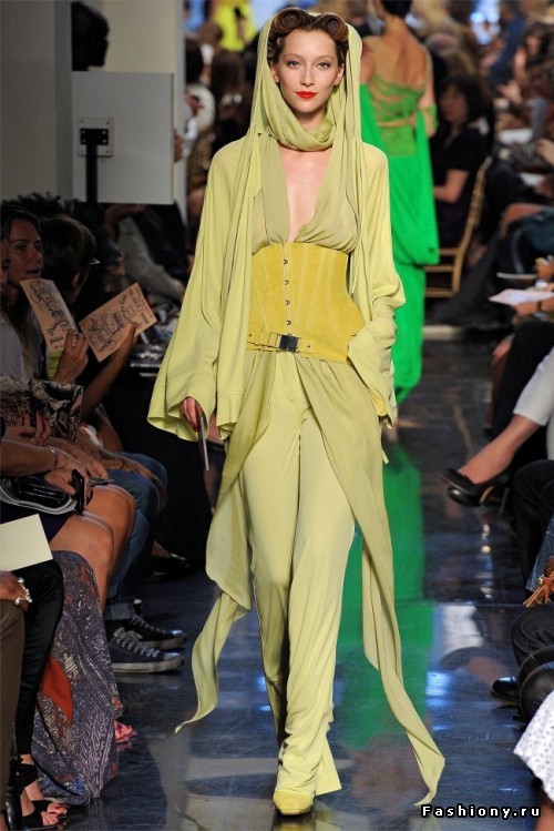 Леггинсы, блейзеры, под которыми были бюстгальтеры, обнажали спину, вместе с тем демонстрирую прекрасный вкус дизайнера. Также можно было увидеть стильные пальто и брюки с высокой талией в коллекции высокой моды Paul Gaultier весна 2012.