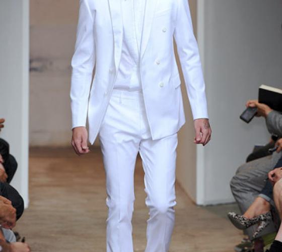 Есть в линии и классический мужской костюм – правда, алого цвета, который является одним из акцентов коллекции. Другие популярные цвета – приглушенный серо-синий и коричневый.